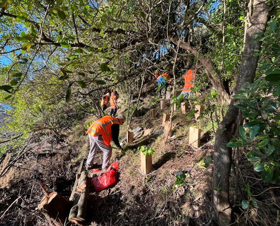 Certainly very hard work with the rocky inlet-edge for the rush planters, and the steep terrain for the terrestrial planters! But everyone handled the conditions well and we couldn’t have wished for a more beautiful day in which to get outside and enjoy the work.