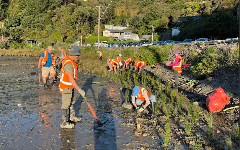 It will be very gratifying to watch everything grow — the rushes are very visible from the road and the trees are very visible from the footpath along SH58 above the kindergarten — and we’ll be keeping an eye on the site to see how the new plantings become established.